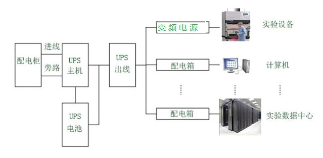 实验室含有各种类型的负载设备,包含普通负载——电脑,还有感性负载及容性负载等;不仅有单相供电设备,还有三相供电设备,而且对UPS输出电源要求较高。在此实验UPS电源解决方案中,艾瑞得推使用工频UPS产品,输出带隔离变压器,不仅保障供电的纯净,也保障UPS自自不易损坏。